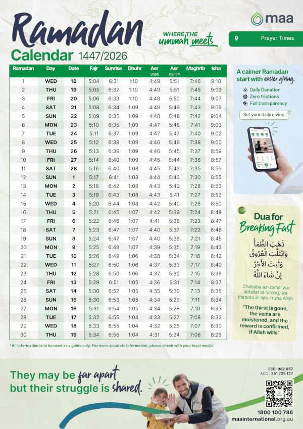 Ramadan start and end dates are subject to official announcements. Please check with your local mosque for further information.